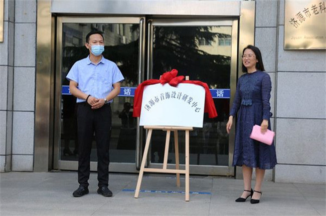 宋愛民和趙艷為濟源市首飾設(shè)計研發(fā)中心揭牌。