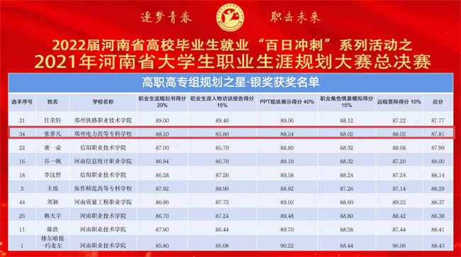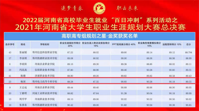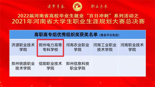 鄭州電力高等專科學校榮獲“2021年河南省大學生職業(yè)生涯規(guī)劃大賽”一金一銀