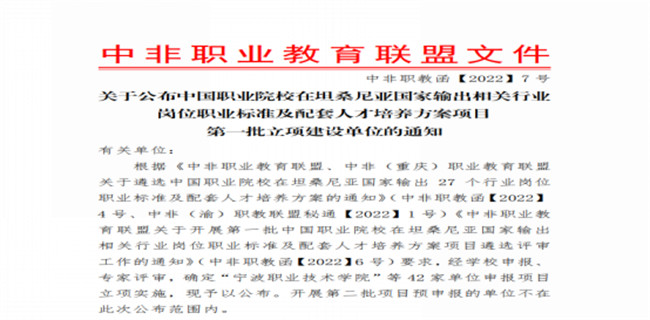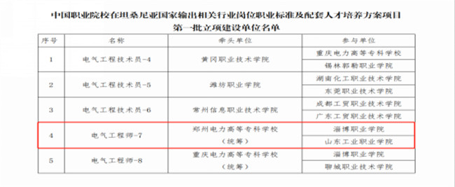 中新河南網(wǎng)6月9日電(李安杰) 近日,中非職業(yè)教育聯(lián)盟公布了中國職業(yè)院校在坦桑尼亞國家輸出相關行業(yè)崗位職業(yè)標準及配套人才培養(yǎng)方案項目第一批立項建設單位評審結果。鄭州電力高等?茖W校電氣工程師崗位標準及配套人才培養(yǎng)方案成功入選第一批立項建設單位名單。