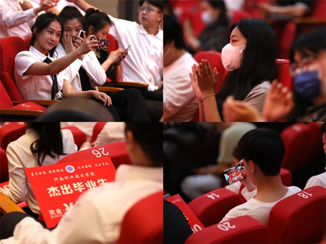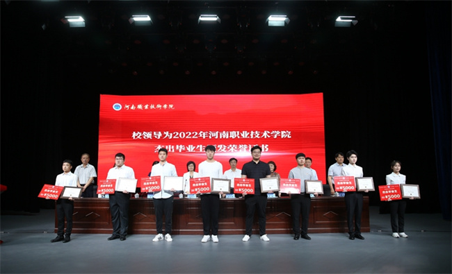 校長(zhǎng)梅樂(lè)堂為2022屆畢業(yè)生代表頒發(fā)了畢業(yè)證書(shū);副校長(zhǎng)肖瓏宣讀了2022年學(xué)校杰出畢業(yè)生表彰文件后,校領(lǐng)導(dǎo)分別為杰出畢業(yè)生頒發(fā)榮譽(yù)證書(shū)。青年教師蔡晶晶代表全體教師為畢業(yè)生送上祝福,并叮囑畢業(yè)生們既要仰望星空,又要腳踏實(shí)地,做新時(shí)代有為青年;杰出畢業(yè)生蔡紀(jì)闖代表全體畢業(yè)生表達(dá)了對(duì)學(xué)校和師長(zhǎng)的感謝,并號(hào)召同學(xué)們要將“河職精神”熔鑄于生命之中,在未來(lái)的各個(gè)領(lǐng)域拼搏奮進(jìn),發(fā)光發(fā)熱。