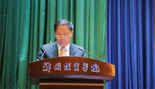 嘉宏控股集團有限公司董事長、鄭州經(jīng)貿(mào)學院董事長陳余國向大會致賀詞