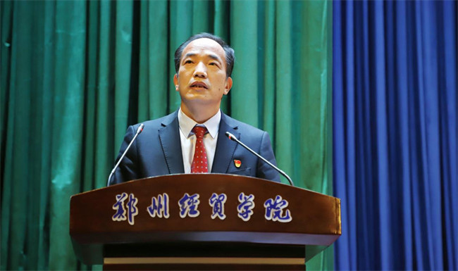 黨委書記趙榴明代表中國共產(chǎn)黨鄭州經(jīng)貿(mào)學院委員會向大會作報告