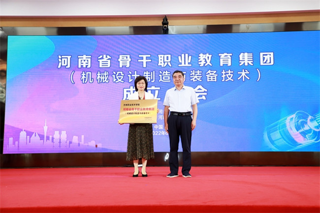 河南省教育廳副廳長陳垠亭為河南機械設計制造與裝備技術職業(yè)教育集團授牌