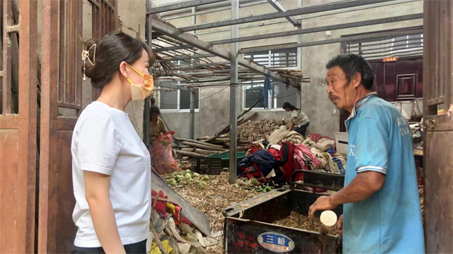 圖為6月4日經(jīng)濟管理學(xué)院團總支書記韓佳星到農(nóng)戶家考察