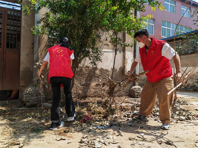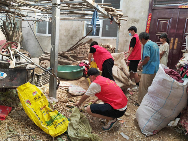 志愿服務(wù)團隊在來到冉莊村后,首先聽李江濤書記介紹了村里的基本經(jīng)濟情況、人口情況、鄉(xiāng)村建設(shè)及發(fā)展現(xiàn)狀等。接著,經(jīng)濟管理學(xué)院團總支書記韓佳星對貧困家庭發(fā)放了慰問物資,并帶領(lǐng)志愿者對勞動力缺乏的農(nóng)戶進行了一對一幫扶,上門送愛心物資、打掃庭院、清理垃圾、街道打掃等。