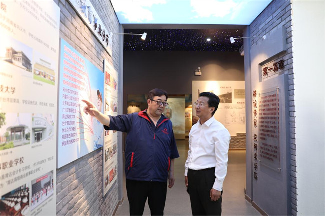 會(huì)后,閆國(guó)慶一行在校領(lǐng)導(dǎo)陪同下參觀了學(xué)校校史館、綜合實(shí)訓(xùn)大樓等場(chǎng)所。
