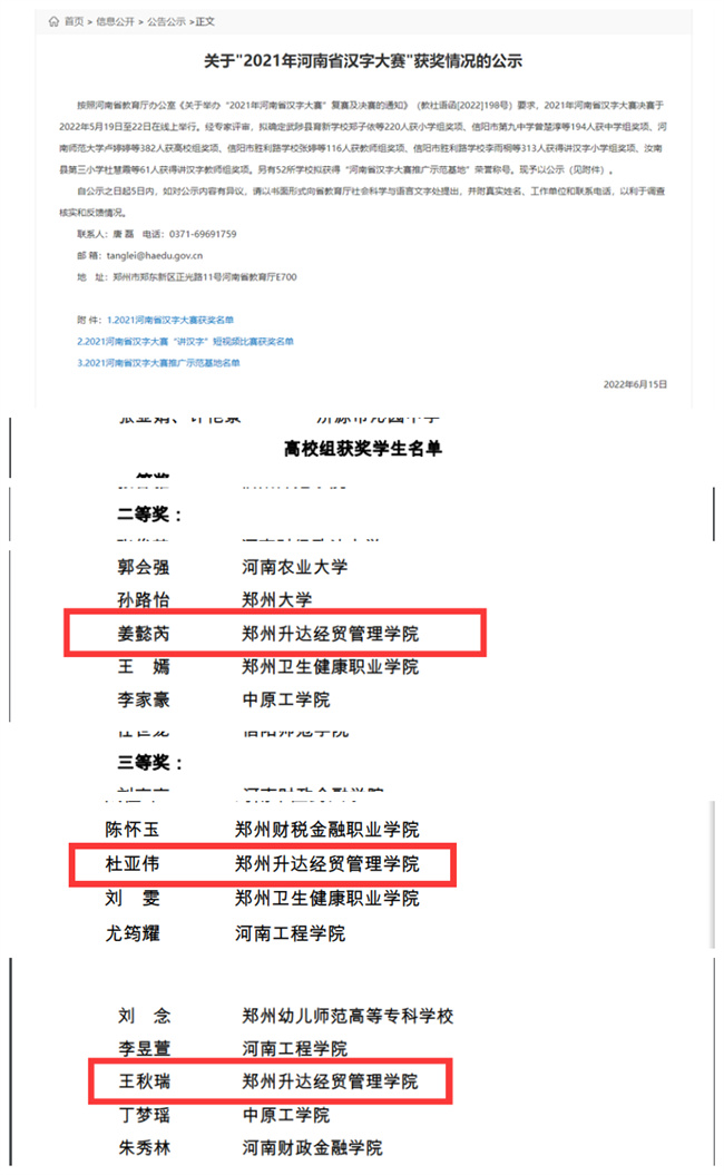 鄭州升達(dá)經(jīng)貿(mào)管理學(xué)院在2021年河南省漢字大賽決賽中喜獲佳績(jī)
