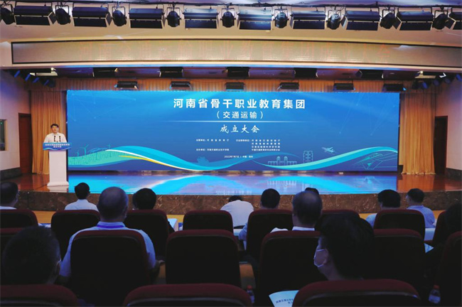 中新河南網(wǎng)7月8日電(劉月 趙學(xué)峰 葉展 楊雨) 7月7日上午,河南省骨干職業(yè)教育集團(tuán)——河南交通運(yùn)輸職業(yè)教育集團(tuán)成立大會(huì)在河南交通職業(yè)技術(shù)學(xué)院(以下簡(jiǎn)稱(chēng)“河南交院”)成功舉辦。河南省教育廳黨組成員、副廳長(zhǎng)陳?ài)笸ぃ幽鲜〗煌ㄟ\(yùn)輸廳黨組成員、副廳長(zhǎng)唐彥民出席大會(huì)并講話。交通運(yùn)輸部科學(xué)研究院院長(zhǎng)石寶林在線上出席大會(huì)。河南省公路學(xué)會(huì)理事長(zhǎng)朱理平,河南交通投資集團(tuán)有限公司副總經(jīng)理關(guān)健,河南省教育廳職業(yè)教育與成人教育處處長(zhǎng)秦劍臣,河南交通運(yùn)輸廳人事教育處處長(zhǎng)魯云杰,鄭州鐵路職業(yè)技術(shù)學(xué)院院長(zhǎng)馬玉霞,河南建筑職業(yè)技術(shù)學(xué)院院長(zhǎng)張新州,河南省機(jī)場(chǎng)集團(tuán)有限公司培訓(xùn)中心主任楊莉,省郵政管理局黨組成員、普遍服務(wù)處處長(zhǎng)賈琳娜等出席大會(huì)。河南交院黨委書(shū)記曹焱出席大會(huì)并代表理事長(zhǎng)單位致辭,校長(zhǎng)劉志偉主持會(huì)議。來(lái)自省內(nèi)外69家職業(yè)院校、行業(yè)組織、龍頭企業(yè)代表和河南交院領(lǐng)導(dǎo)班子成員等150余人參加大會(huì)。