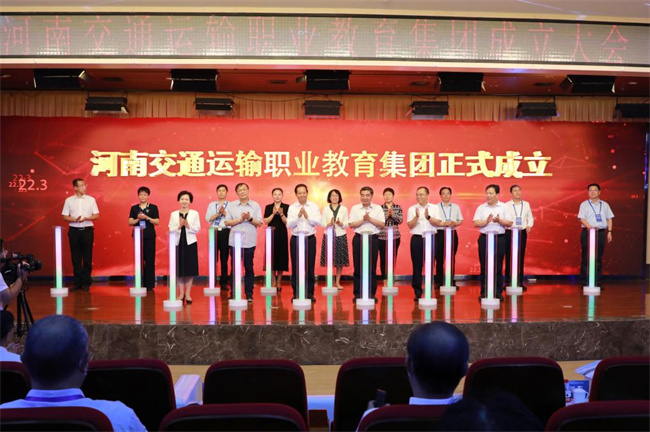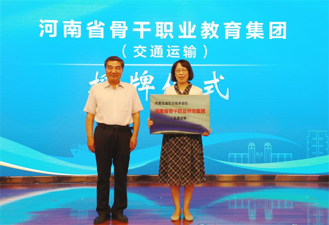 會(huì)上,陳?ài)笸楹幽辖辉菏?ldquo;河南省骨干職業(yè)教育集團(tuán)”牌匾,并與唐彥民等領(lǐng)導(dǎo)一起按下啟動(dòng)鍵,為河南交通運(yùn)輸職業(yè)教育集團(tuán)的正式成立啟幕。