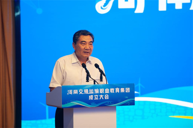 陳?ài)笸ご砗幽鲜〗逃龔d講話。他指出,我省高度重視職業(yè)教育集團(tuán)化辦學(xué),集團(tuán)規(guī)模在全國(guó)處于前列,在此基礎(chǔ)上組建20個(gè)省級(jí)骨干職教集團(tuán),是進(jìn)一步深化職業(yè)教育集團(tuán)化辦學(xué)改革、服務(wù)產(chǎn)業(yè)轉(zhuǎn)型升級(jí),促進(jìn)教育鏈、人才鏈與產(chǎn)業(yè)鏈、創(chuàng)新鏈有效銜接的重要舉措。整合重組的河南交通運(yùn)輸職教集團(tuán),是我省交通運(yùn)輸行業(yè)深化產(chǎn)教融合校企合作的重要實(shí)踐和探索,對(duì)加速培養(yǎng)交通運(yùn)輸類(lèi)復(fù)合型技術(shù)人才、加快推進(jìn)我省交通運(yùn)輸體系建設(shè)具有重要意義。他對(duì)集團(tuán)發(fā)展提出四點(diǎn)希望:一要明確發(fā)展定位,找準(zhǔn)各方利益結(jié)合點(diǎn),積極探索混合所有制辦學(xué)模式,加速教育鏈和產(chǎn)業(yè)鏈的高度融合,不斷優(yōu)化職業(yè)教育供給,為其他職教集團(tuán)實(shí)體化運(yùn)作作出示范和表率;二要充分發(fā)揮集團(tuán)的平臺(tái)作用和成員的優(yōu)勢(shì),著力深化人才培養(yǎng)模式改革,促進(jìn)成員單位資源共享、優(yōu)勢(shì)互補(bǔ),構(gòu)建校企命運(yùn)共同體;三要充分發(fā)揮集團(tuán)的資源集約優(yōu)勢(shì),切實(shí)把工作重心放在提質(zhì)培優(yōu)、增值賦能上,在內(nèi)涵建設(shè)上下功夫,在特色化發(fā)展上多凝練,在品牌打造上出亮點(diǎn),著力打造河南職教產(chǎn)教融合發(fā)展品牌;四要切實(shí)找準(zhǔn)定位、理清思路,科學(xué)謀劃,提升合作層次和質(zhì)量,攜手打造政、校、企、行“命運(yùn)共同體”,實(shí)現(xiàn)健康、持續(xù)、高質(zhì)量發(fā)展,為推進(jìn)社會(huì)主義現(xiàn)代化河南建設(shè)提供強(qiáng)有力的技術(shù)技能人才支撐。