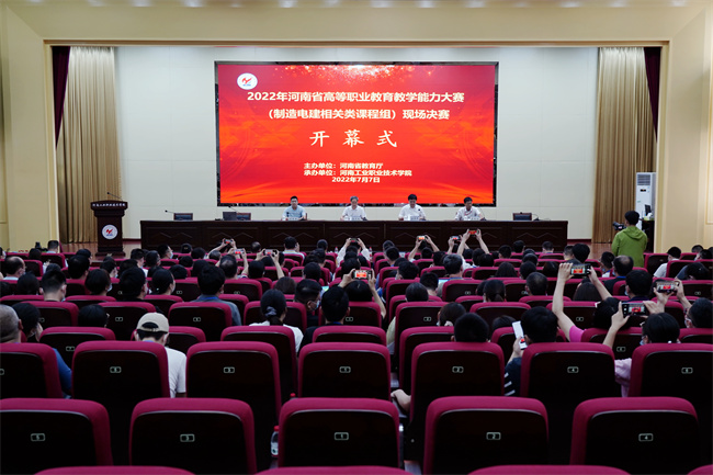 在7日舉行的大賽開(kāi)幕式上,河南省教育廳職成教處副處長(zhǎng)史文生發(fā)表熱情洋溢的講話并宣布大賽開(kāi)幕,河南工業(yè)職業(yè)技術(shù)學(xué)院黨委書(shū)記溫道軍在致辭中介紹了學(xué)校在教育教學(xué)改革方面取得的成效,河南工業(yè)職業(yè)技術(shù)學(xué)院副校長(zhǎng)賈慶成、河南省教育廳職成教處主任劉東洋出席,各參賽隊(duì)領(lǐng)隊(duì)、參賽選手參加了開(kāi)幕式。