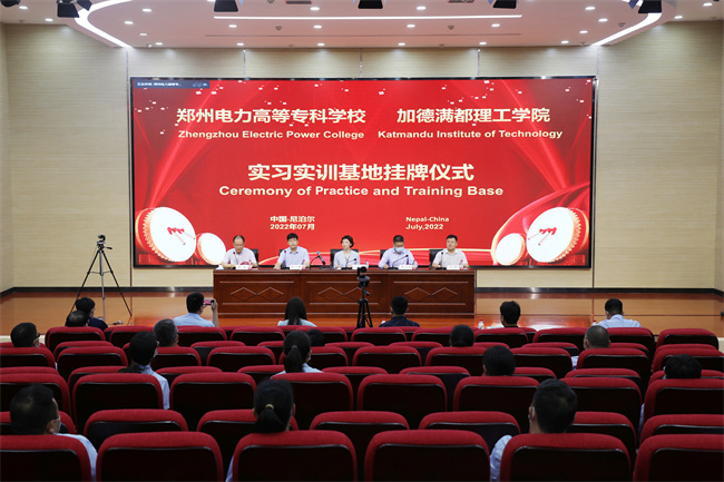 鄭州電力高等?茖W校黨委書記楊義波在致辭中表示,“中尼電力絲路學院(尼泊爾)實習實訓基地”的建立代表學校國際合作辦學有了進一步的升華與提高,既增進了中尼友誼,又增強了國際交流,為中資電力企業(yè)培養(yǎng)當?shù)亟?jīng)濟建設需要的高素質(zhì)技術(shù)技能人才創(chuàng)造了條件。