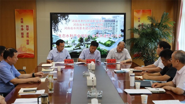 中新河南網(wǎng)7月22日電 為貫徹落實教育部辦公廳《關(guān)于開展全國高校書記校長訪企拓崗促就業(yè)專項行動的通知》文件精神,不斷拓展就業(yè)崗位和就業(yè)渠道,深入推進(jìn)產(chǎn)教融合。7月21日,河南水利與環(huán)境職業(yè)學(xué)院黨委書記王立正、校長李廣慧帶隊到河南水利第一工程局“訪企拓崗”,并與河南水利第一工程局、河南省水利基本建設(shè)工程質(zhì)量檢測中心站共建“生態(tài)水利產(chǎn)業(yè)學(xué)院”,簽署戰(zhàn)略合作框架協(xié)議。河南水利第一工程局黨委書記、局長姚斌,黨委副書記、副局長楊東,紀(jì)委書記、副局長魏憲田,局黨委委員、人力資源部長崔凱,局黨委委員、市場開發(fā)部長黃志偉,局黨委委員、行政辦主任馬衛(wèi)民,局黨委委員、工程中心副主任潘奎生,學(xué)校黨委委員、黨政辦公室主任張志遠(yuǎn)、水利工程系黨政負(fù)責(zé)同志及黨委宣傳部有關(guān)人員等出席座談會。會議由魏憲田主持。