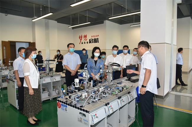 毛杰一行先后實地調(diào)研了學(xué)校的創(chuàng)客空間、大數(shù)據(jù)雙創(chuàng)基地、智能制造格力學(xué)習(xí)工廠、智能制造綜合實訓(xùn)室、文化旅游學(xué)院智能餐廳實訓(xùn)室、茶藝實訓(xùn)室、智慧健康學(xué)院實訓(xùn)室等教育教學(xué)場所,每到一處,都與教師和學(xué)生親切交談,詳細詢問,深入了解學(xué)校人才分類培養(yǎng)、教學(xué)改革、創(chuàng)新創(chuàng)業(yè)、實訓(xùn)條件、技能大賽等情況。