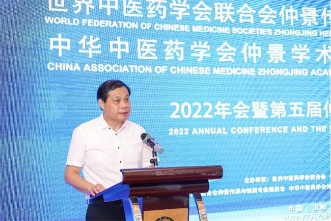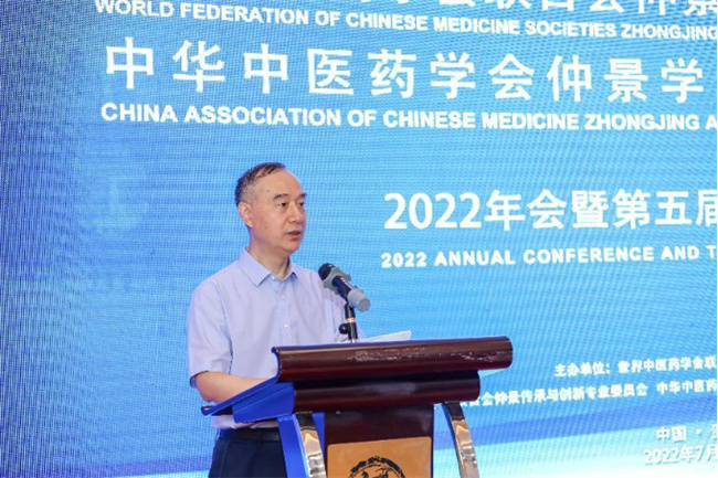世界中聯(lián)仲景傳承與創(chuàng)新專業(yè)委員會會長、中華中醫(yī)藥學會仲景學術傳承與創(chuàng)新共同體理事長、河南中醫(yī)藥大學校長許二平作工作報告