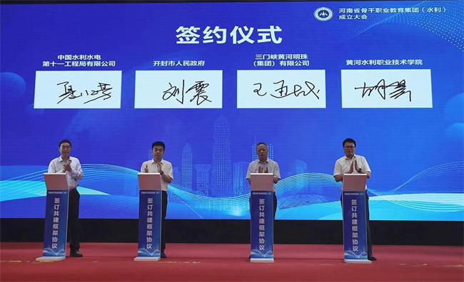 會上,陳垠亭為河南水利骨干職業(yè)教育集團授牌。與會領導共同為河南水利骨干職業(yè)教育集團舉行啟動儀式。劉震、王通戰(zhàn)、夏水芳、胡昊共同簽署了河南水利骨干職業(yè)教育集團共建框架協(xié)議。