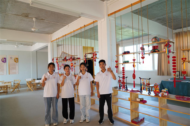 圖為實踐團成員在非遺體驗館非遺產(chǎn)品展廳前合影,非遺展廳設有研學活動區(qū)區(qū),實踐團成員把這里作為非遺文化研學基地,常態(tài)化開展非遺研學活動。王宛玲 攝
