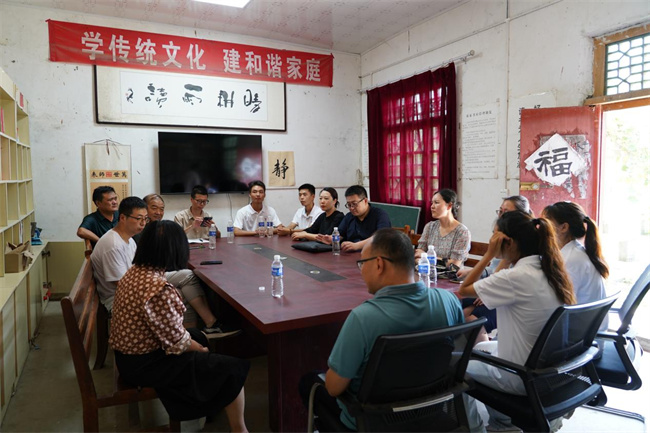 圖為實踐團成員與實踐團導師及文化周莊黨員干部群眾座談,交流非遺傳承、保護和發(fā)展的措施、路徑、方法。王宛玲 攝
