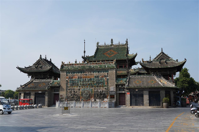 賒店古鎮(zhèn)依水而建,依商而興。大家來到步入古鎮(zhèn),仿佛走進(jìn)了歷史深處。始建于清乾隆年間的山陜會(huì)館,集精巧的建筑結(jié)構(gòu)與精湛的雕刻藝術(shù)于一體,實(shí)踐團(tuán)成員首先來到這里,在雕梁畫棟的多彩琉璃照壁前駐足停留,不禁被精湛的古代工藝所折服,壁面整體構(gòu)圖精巧,寓意豐富,體現(xiàn)了中國古代“匠人”的偉大智慧。