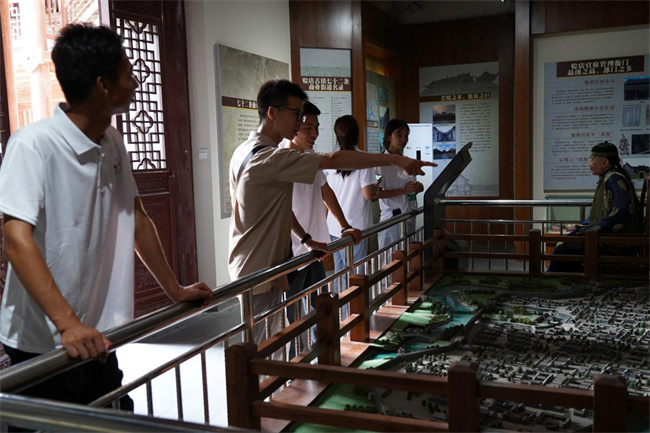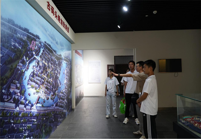 圖為實(shí)踐團(tuán)成員在古鎮(zhèn)沙盤模型前觀摩,古會(huì)館、古城墻、古城樓相映成輝,猶如一本厚重的歷史古書,一頁一頁記錄著中華文明史的發(fā)展,展現(xiàn)著時(shí)代的變遷。王宛玲 攝