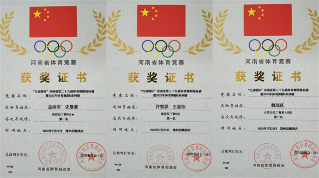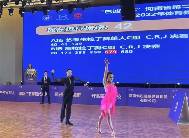 該校體育舞蹈專業(yè)6對(duì)同學(xué)參加了此次大賽,在高校拉丁專業(yè)組4個(gè)組別中,獲得高校拉丁專業(yè)A組和C組的冠軍、大學(xué)生拉丁舞單人B組冠軍以及高校專業(yè)B組和D組的亞軍。該校隊(duì)員們?cè)谫悎?chǎng)上伴隨著音樂翩翩起舞,盡情展示體育舞蹈的風(fēng)采和魅力。經(jīng)過多輪數(shù)次的比拼進(jìn)入決賽,最終勇獲佳績。益詠軍、史曼曼同學(xué)奪得競(jìng)爭非常激烈的高等院校拉丁A組第一名。許智源、王嘉怡同學(xué)從各大院校的選手中通過數(shù)輪的比拼脫穎而出勇奪第一名。