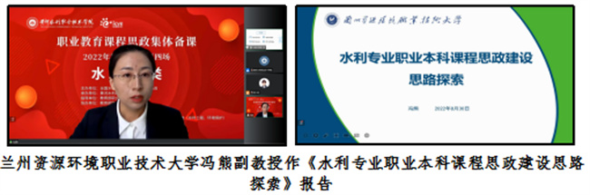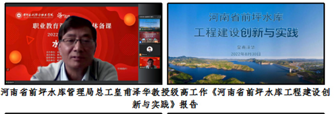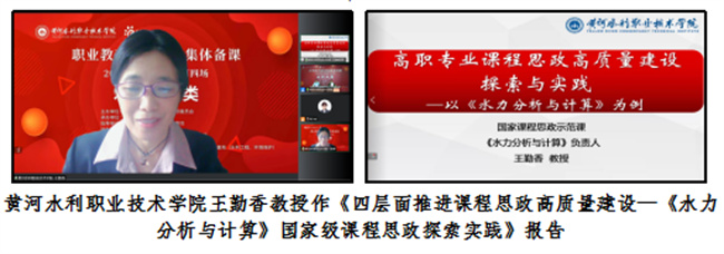 王韶華線上作《大力弘揚新時代水利精神 培養(yǎng)德才兼?zhèn)涞乃瞬?助推新時代水利高質(zhì)量發(fā)展》的指導(dǎo)講話。講話梳理了黨和國家近年來在課程思政改革要求,以及水利職業(yè)教育取得的課程思政建設(shè)成果,并結(jié)合如何強化思想政治引領(lǐng)、提升課程育人成效和提升課程思政能力等方面作出具體指導(dǎo)。