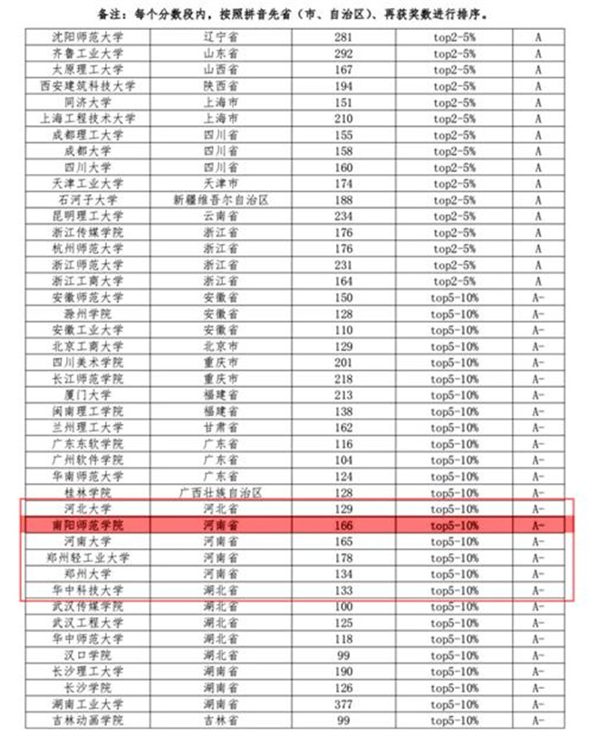 南陽(yáng)師范學(xué)院在本次全國(guó)普通高校大學(xué)生藝術(shù)類(lèi)競(jìng)賽指數(shù)排名中表現(xiàn)優(yōu)異,是學(xué)校美術(shù)與藝術(shù)設(shè)計(jì)學(xué)院、珠寶與玉雕學(xué)院、新聞與傳播學(xué)院、音樂(lè)學(xué)院等相關(guān)學(xué)院積極落實(shí)“以賽促教”、“以賽促學(xué)”、注重培養(yǎng)大學(xué)生實(shí)踐創(chuàng)新能力的成果,多次取得佳績(jī),在一定程度上也反映出近年來(lái)學(xué)校創(chuàng)新人才培養(yǎng)成效顯著。