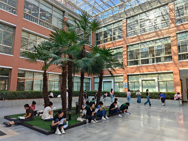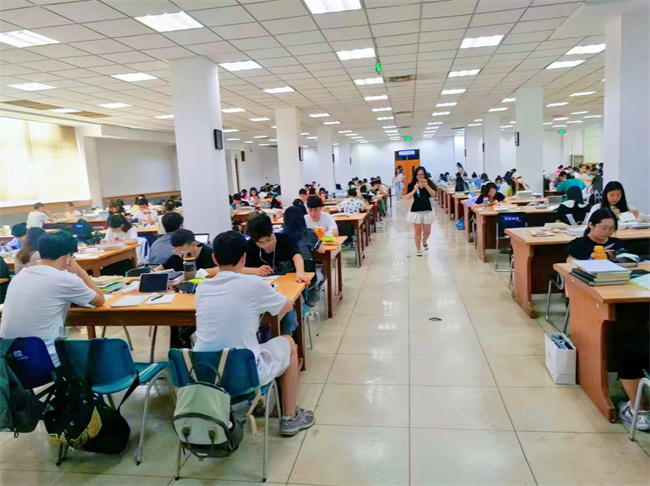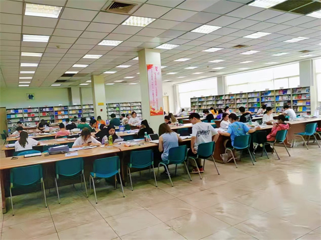 朗朗讀書聲,孜孜勤學(xué)影。清晨六、七點(diǎn)鐘,在圖書館大門外草坪上、道路旁、圖書館中廳,不少同學(xué)在專心致志地讀書或背誦;圖書館自修室更是座無(wú)虛席,人氣爆棚,這些如饑似渴的學(xué)生中,多為備戰(zhàn)研究生、公務(wù)員、四六級(jí)考試而來,也不乏閱讀愛好者。八點(diǎn)剛過,掃過場(chǎng)所碼的讀者排隊(duì)刷卡(臉)魚貫而入,期刊室、閱覽書區(qū)或電子閱覽室到處都是認(rèn)真閱讀或埋頭苦學(xué)的身影,學(xué)生們盡情享受著學(xué)習(xí)的快樂,圖書館里彌漫著濃厚的學(xué)習(xí)氛圍。一名大四學(xué)生說:她很喜歡待在圖書館里,因?yàn)閳D書館的學(xué)習(xí)氛圍和環(huán)境秩序良好,在這里每一個(gè)同學(xué)都在認(rèn)真地學(xué)習(xí),自己也會(huì)沉浸在這種競(jìng)爭(zhēng)氛圍中更加努力,感覺自己的每一個(gè)細(xì)胞都異常興奮,充滿拼搏的力量。