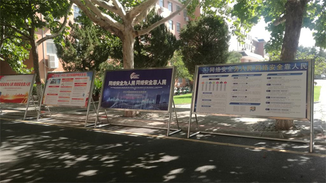 發(fā)揮陣地作用,擴(kuò)大宣傳廣度。學(xué)校在各主干道、教學(xué)區(qū)、住宿區(qū)、圖書館學(xué)習(xí)區(qū)等處擺放宣傳展板、懸掛條幅、張貼海報(bào),在各教學(xué)樓電子顯示屏循環(huán)播放防詐騙、網(wǎng)絡(luò)安全和個(gè)人安全意識(shí)等方面的網(wǎng)絡(luò)宣傳標(biāo)語,通過校園廣播宣傳、播放有關(guān)網(wǎng)絡(luò)安全的常識(shí),學(xué)校官方微信公眾號(hào)、微博專題推送網(wǎng)絡(luò)安全知識(shí)文章。另外,學(xué)校還向36000余名師生發(fā)送了“2022年國(guó)家網(wǎng)絡(luò)安全宣傳周”主題手機(jī)短信,用貼近實(shí)際生活的話語讓大家耳濡目染,更加重視網(wǎng)絡(luò)安全。