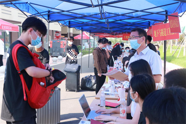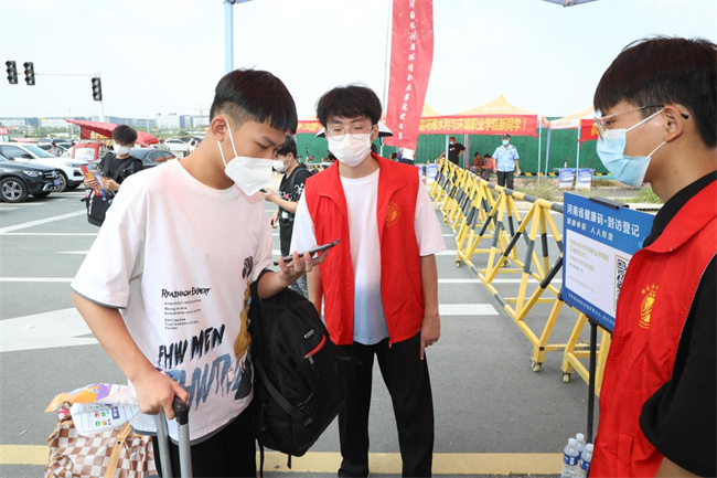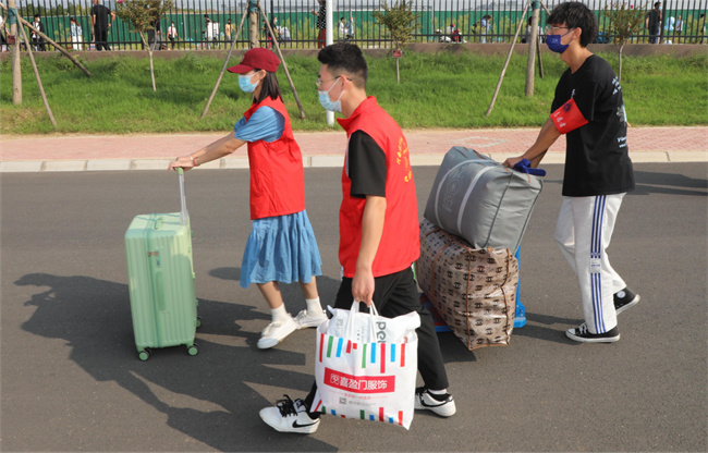 學(xué)校在地鐵站等交通樞紐設(shè)置了迎新接待點(diǎn),為新生提供接站、帶路等暖心服務(wù)。