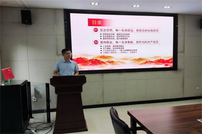 學院黨總支書記何林智以《三尺講臺守初心 立德樹人勇?lián)敗窞轭},主要圍繞堅定信仰,做一名講政治、有信念的合格黨員和愛崗敬業(yè),做一名講奉獻、有作為的共產(chǎn)黨員兩方面,為黨員師生上了一堂生動的思政課。