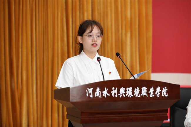 2022級(jí)水利工程系學(xué)生厲語(yǔ)珊作為新生代表發(fā)言。她表達(dá)了對(duì)人生新征程的憧憬和期待,表示天道酬勤,厚德載物,將一如既往的勤學(xué)善問(wèn),積極上進(jìn),并號(hào)召全體新生無(wú)懼挫折,制定明確目標(biāo),做有遠(yuǎn)大理想抱負(fù)、深厚家國(guó)情懷、有擔(dān)當(dāng)有作為的青年。