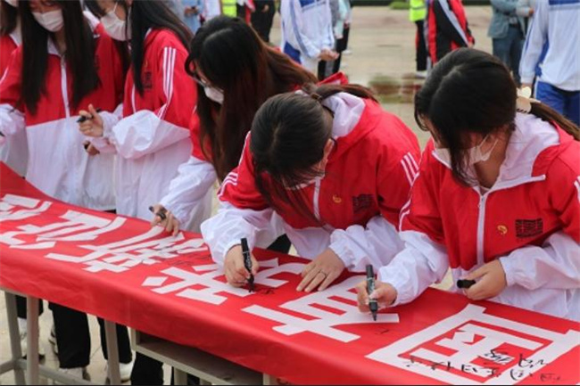 最后,全體人員在“青春喜迎二十大·強(qiáng)國(guó)有我新征程”條幅上簽名,表達(dá)對(duì)祖國(guó)的誠(chéng)摯祝福和深切情感。