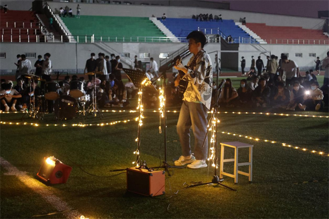 夜幕降臨,機(jī)電學(xué)子來(lái)到西田徑場(chǎng),共赴一場(chǎng)草坪音樂(lè)節(jié)之約。燈光點(diǎn)點(diǎn),席地而坐,聆聽(tīng)美妙的音樂(lè),感受歡快的音律,享受美滿(mǎn)的國(guó)慶假期。