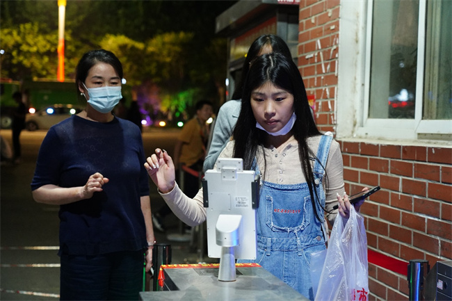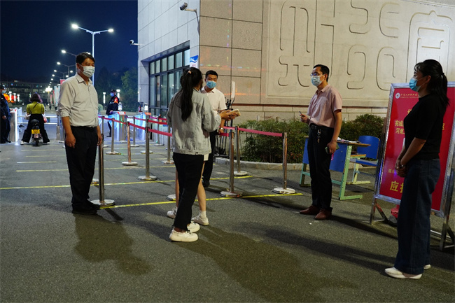 中新河南網10月7日電 (劉天恒) “請同學們掃場所碼,打開行程碼、健康碼,按照地面上的一米間隔線,有序排隊刷臉、測溫入校。”這句話已經成為在河南工業(yè)職業(yè)技術學院孔明路、光武路校區(qū)值班的黨員干部掛在嘴邊的叮囑。