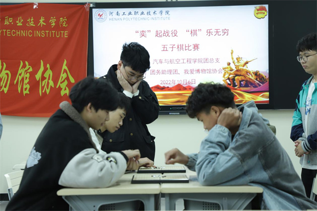 為慶祝中華人民共和國(guó)成立73周年,迎接二十大的到來(lái),堅(jiān)定不移跟黨走,共同邁進(jìn)新征程,河南工業(yè)職業(yè)技術(shù)學(xué)院汽車與航空工程學(xué)院舉辦棋藝大賽。本次棋藝大賽遵循“以棋會(huì)友”的宗旨,回應(yīng)同學(xué)們切磋棋藝的殷切期盼,同時(shí)為棋類愛(ài)好者提供一個(gè)相互交流的平臺(tái),弘揚(yáng)時(shí)代旋律的健康校園文化。