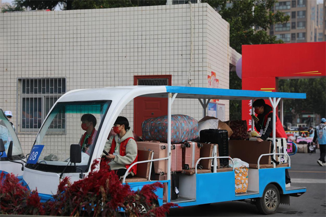 校園擺渡車(chē)為新生搬運(yùn)行李