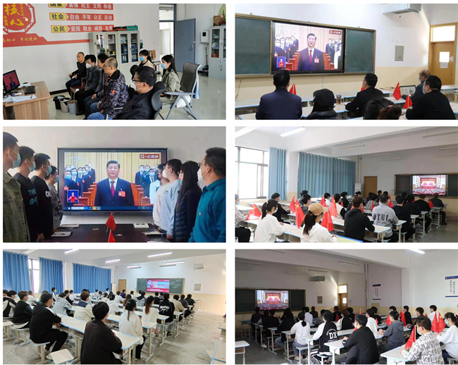 學(xué)院各基層黨組織、二級(jí)學(xué)院、班級(jí)分別在會(huì)議室、多媒體教室、宿舍設(shè)置分會(huì)場(chǎng),精心組織黨員干部、師生利用網(wǎng)絡(luò)、廣播、電視、新聞客戶端等多種形式認(rèn)真收聽(tīng)收看大會(huì)直播。