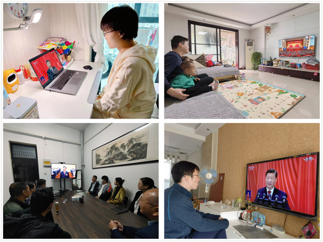 受疫情形勢(shì)影響,堅(jiān)守在校園抗疫一線的院領(lǐng)導(dǎo)在厚德樓418會(huì)議室集中觀看大會(huì)直播。