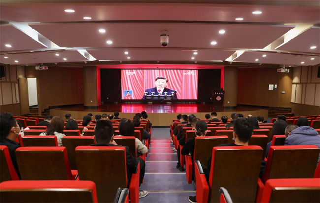 結(jié)合疫情防控實(shí)際,該校分別在國(guó)際會(huì)議廳和雙創(chuàng)大講堂設(shè)置主會(huì)場(chǎng)和分會(huì)場(chǎng),在校的校黨委理論學(xué)習(xí)中心組成員和黨政職能部門科級(jí)及以上干部在主會(huì)場(chǎng)收看開幕會(huì),黨政職能部門職員在分會(huì)場(chǎng)收看開幕會(huì)。各二級(jí)黨組織結(jié)合實(shí)際,采取線上線下相結(jié)合的方式,組織本單位師生收聽收看開幕會(huì)。校內(nèi)教學(xué)樓、餐廳、大禮堂等打開電視、電子顯示屏等設(shè)備,供師生觀看大會(huì)盛況。校廣播站全程轉(zhuǎn)播開幕會(huì)音頻。