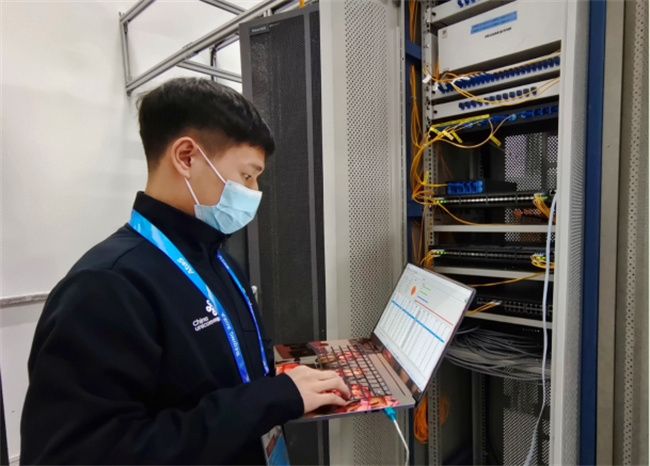 北京冬奧會期間,董天賜在八達(dá)嶺國際會展中心機(jī)房工作場景