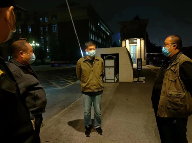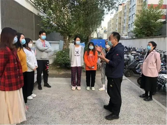 每天下午和晚上,音樂舞蹈學院學工隊伍在國基生活園區(qū)巡邏,在園區(qū)內督促學生戴口罩,不聚集,不聚餐等。