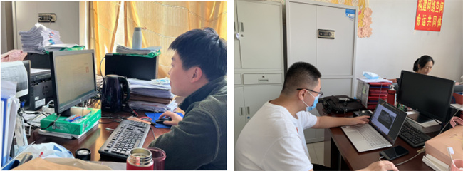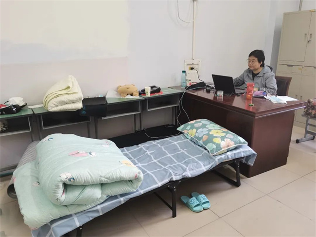 他們堅守抗疫一線,同時不耽誤本職工作,抗疫之余,在辦公室里辦公、與學生線上開班會、線上教學。