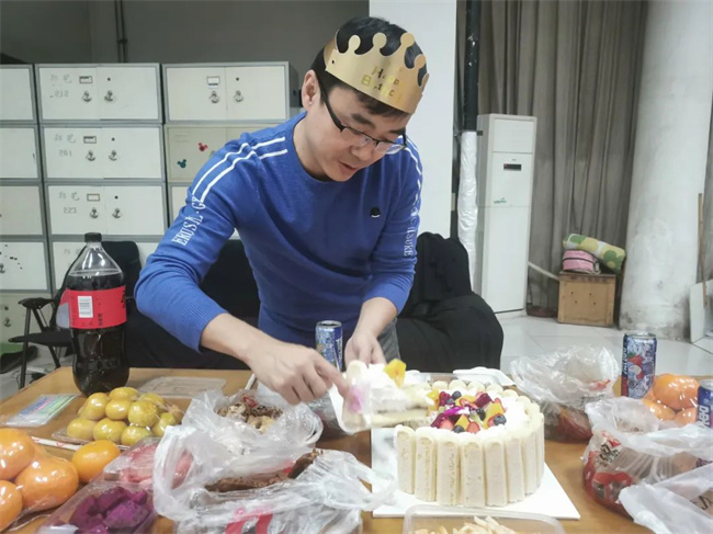 怕封在家里,學工隊伍第一時間入住學校,恰逢音樂舞蹈學院和進旭老師生日,大家在園區(qū)一起過了簡單的生日。
