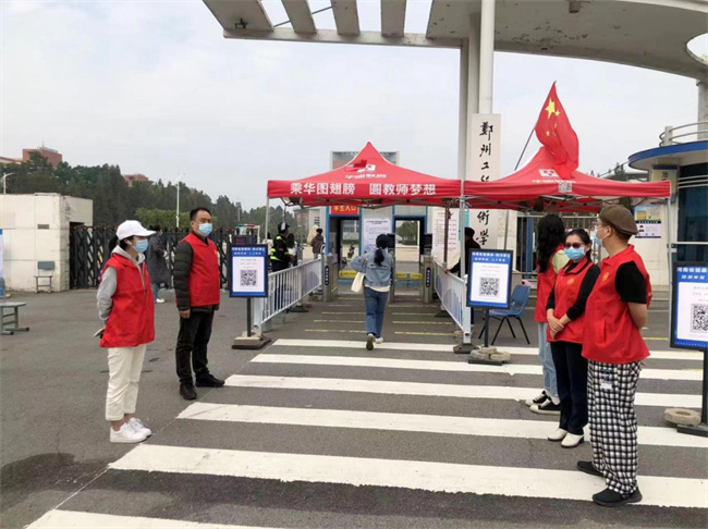 校團委組織以入團積極分子、團員、入黨積極分子為骨干的青年志愿者隊伍,在四個校區(qū)開展校園文明行為督導。每天從7點半到晚上9點半在校園內督促學生正確佩戴口罩、出入場所掃碼。(鄭州工程技術學院供稿)