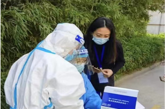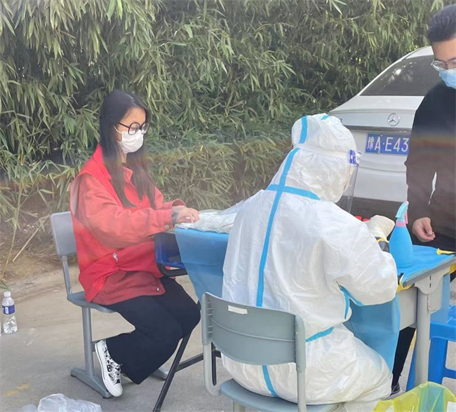 分團委副書記孫琳老師協(xié)助核酸檢測
