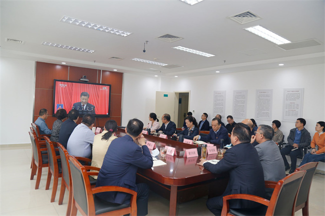 10月16日上午10時(shí),學(xué)校黨委理論學(xué)習(xí)中心組舉行學(xué)習(xí)(擴(kuò)大)會(huì),全體校領(lǐng)導(dǎo)和有關(guān)職能部門負(fù)責(zé)人在圖書館第二報(bào)告廳集中收看開幕會(huì),認(rèn)真聆聽習(xí)近平總書記代表第十九屆中央委員會(huì)向大會(huì)所作的報(bào)告。校長(zhǎng)許二平表示,深入學(xué)習(xí)宣傳貫徹黨的二十大精神是學(xué)校當(dāng)前和今后一個(gè)時(shí)期的重要政治任務(wù),全校各基層黨組織要采取多種形式深學(xué)細(xì)悟黨的二十大精神,推動(dòng)各項(xiàng)工作再上新臺(tái)階。我們要高舉偉大旗幟,汲取貫徹黨的二十大精神的磅礴力量;要響應(yīng)偉大號(hào)召,走好高等教育高質(zhì)量發(fā)展之路;要牢記使命擔(dān)當(dāng),把握中醫(yī)藥事業(yè)傳承創(chuàng)新發(fā)展的重要契機(jī),不負(fù)重托,守正創(chuàng)新,積極融入新的偉大奮斗,在全面推進(jìn)中華民族偉大復(fù)興的新征程上書寫更加出彩的中醫(yī)藥篇章!