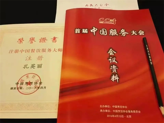 功夫不負(fù)有心人,憑借深厚理論知識(shí)和高超技藝,孔英麗于2007年獲評(píng)高級(jí)技師,并于2016年獲評(píng)國(guó)家第一批注冊(cè)餐飲服務(wù)大師榮譽(yù)稱號(hào),當(dāng)年她還參加了在人民大會(huì)堂舉行的授勛儀式,那身紅色的職業(yè)裝成為此生最難忘的紀(jì)念。