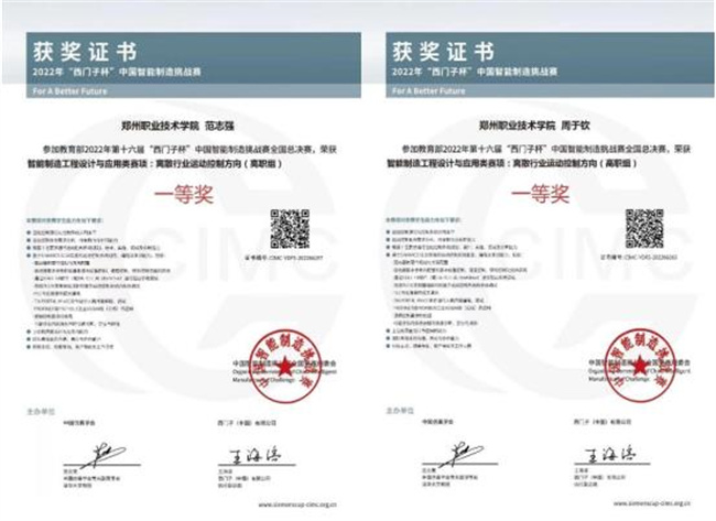 據(jù)了解,在9月29日,由教育部國(guó)際合作與交流司指導(dǎo),中國(guó)仿真學(xué)會(huì)、西門子(中國(guó))有限公司聯(lián)合主辦的教育部2022年第十六屆CIMC“西門子杯”中國(guó)智能制造挑戰(zhàn)賽全國(guó)總決賽落下帷幕。由鄭州職業(yè)技術(shù)學(xué)院智能制造學(xué)院姬耀鋒、盧青波聯(lián)合指導(dǎo),學(xué)生周于欽、范志強(qiáng)組成的“森宇”團(tuán)隊(duì),充分發(fā)揚(yáng)勇于拼搏的奮斗精神,精心準(zhǔn)備,科學(xué)訓(xùn)練,歷時(shí)三個(gè)月的艱辛備賽,最終不畏強(qiáng)手、沉著應(yīng)戰(zhàn),憑借扎實(shí)的專業(yè)技能和良好的職業(yè)素養(yǎng),勇奪“離散行業(yè)運(yùn)動(dòng)控制方向”賽項(xiàng)全國(guó)總決賽一等獎(jiǎng)。
