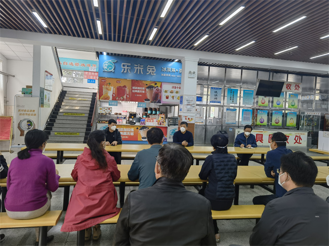 校長(zhǎng)許二平在餐廳召開現(xiàn)場(chǎng)會(huì)
